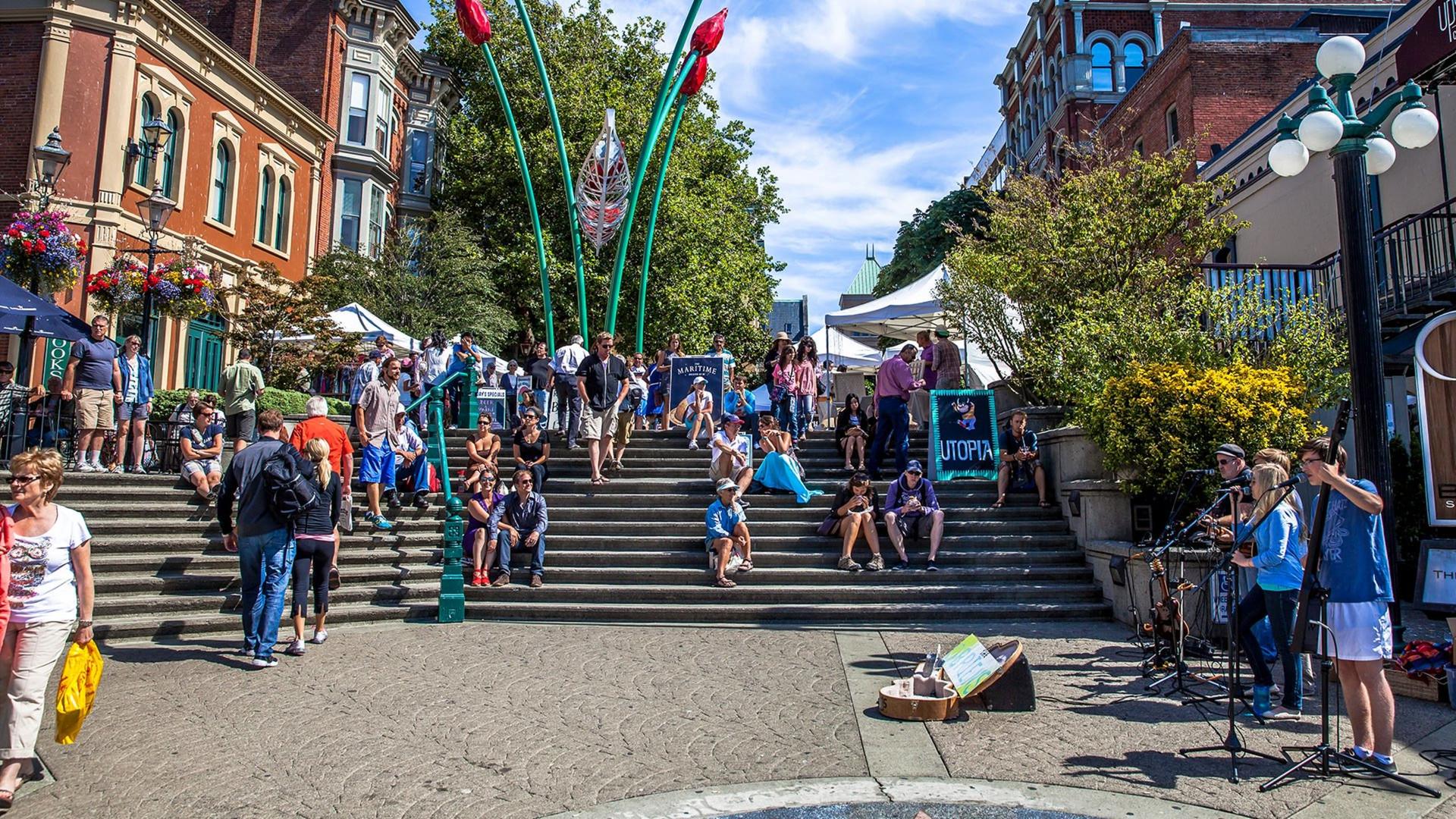 Bastion Square is located in the heart of downtown. The ceremonial entry arch, located at View and Government Streets, welcomes visitors to the original site of old Fort Victoria. The square looks out on the Inner Harbour and boasts some of the finest restaurants, pubs, and cafes in Victoria. In the summer, its seasonal artisan market and many outdoor patios make it an ideal spot to visit