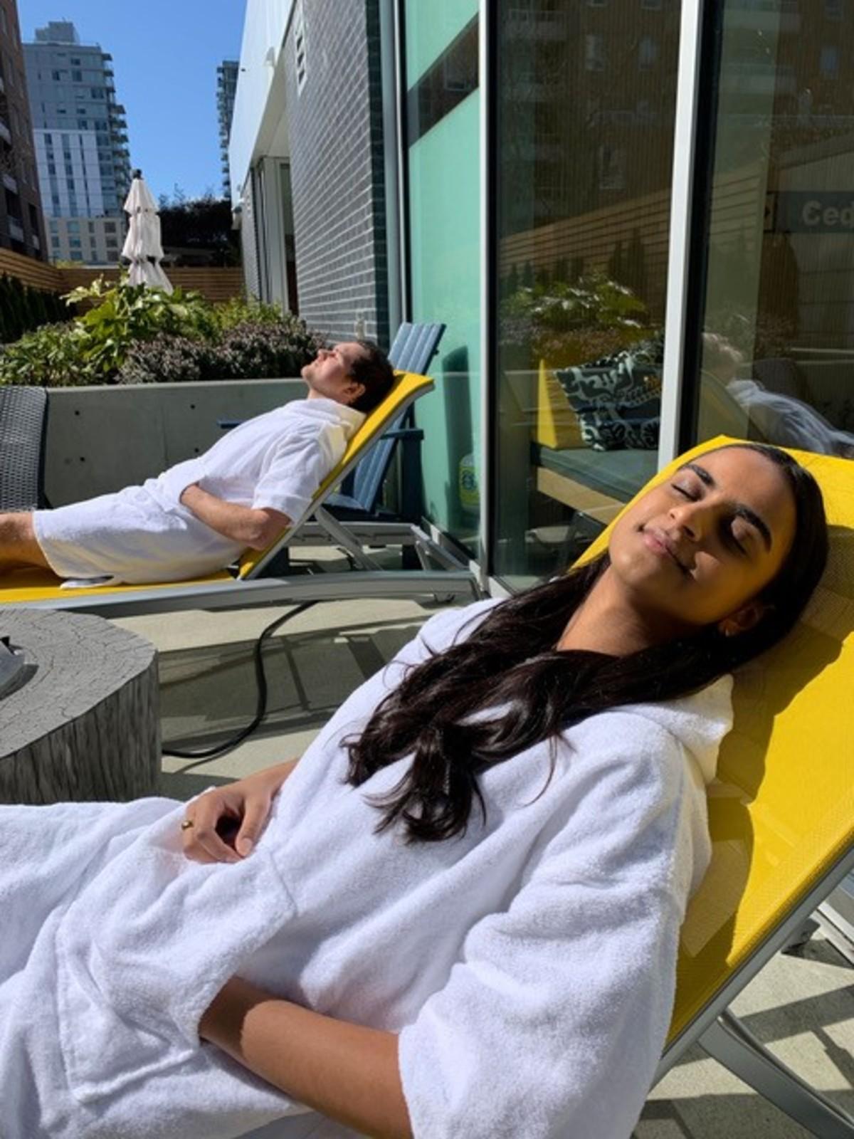 Ritual offers Nordic Circuit (hot cold), RMT Massage, and Private Sauna Suites! Find traditional cedar and basswood saunas, infrared saunas, eucalyptus steam room, cold plunge pool, Nordic bucket showers, salt lounge, massage, and three beautiful patios in a modern downtown setting. Come enjoy a two hour sauna circuit—at your own pace, with friends or solo. Or try one of our private sauna suites and RMT massage therapy. Enjoy après-spa snacks in our licensed café. Ritual is a friendly, unfussy, co-ed, accessible day spa for those 18+. Bathing suits on, cell phones off!