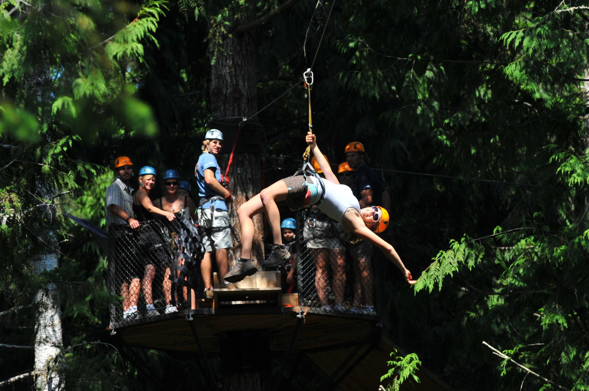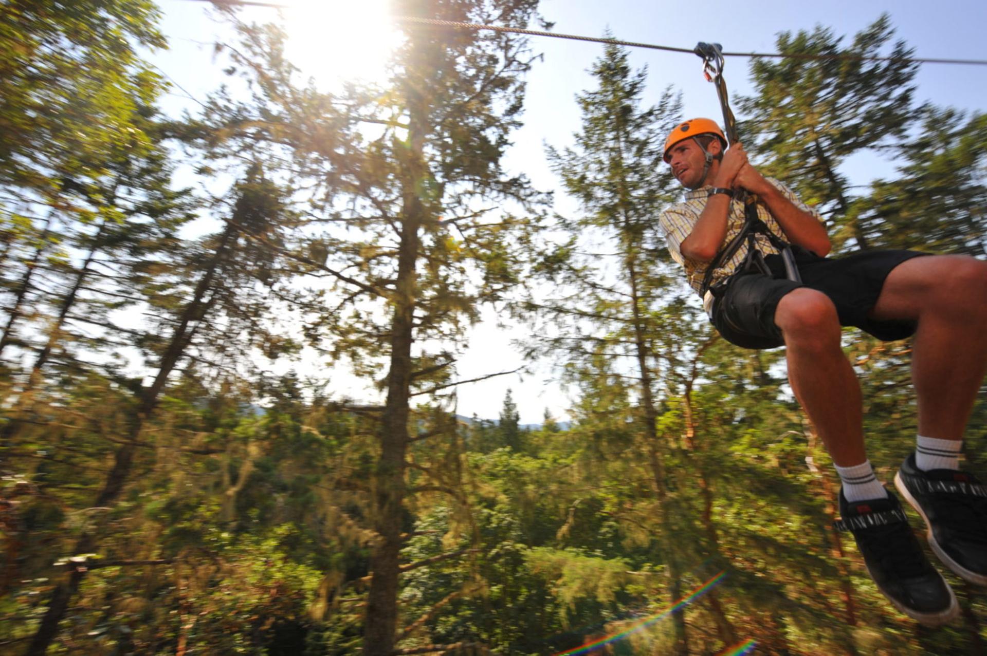 Discover the thrill of flight at Adrena LINE Zipline Adventure Park, located in Sooke!
