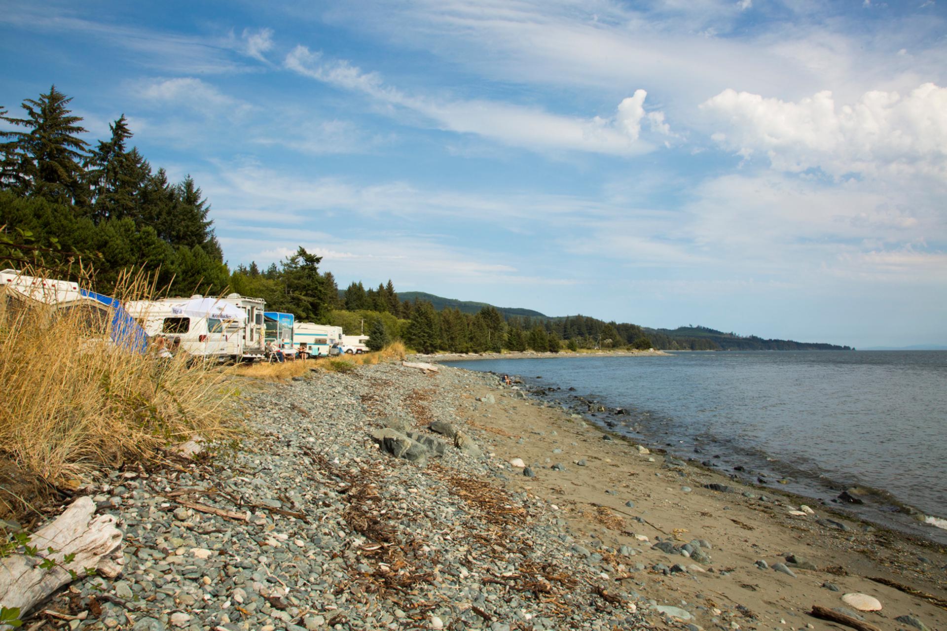 An affordable oceanfront RV and tent campground along the idyllic Juan de Fuca Strait. It features 3.5km of cobble beach, fabulous views of the Olympic Peninsula, trails through coastal forest and Sandcut Beach, a local favorite.
