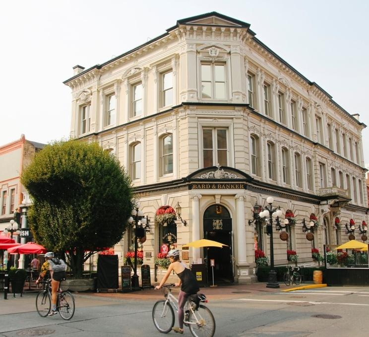 Immerse yourself in the heart of downtown on The Bard & Banker’s Government Street Patio. Here, umbrellas and heaters will keep you protected from elements as you savour hearty food and sip on ale.