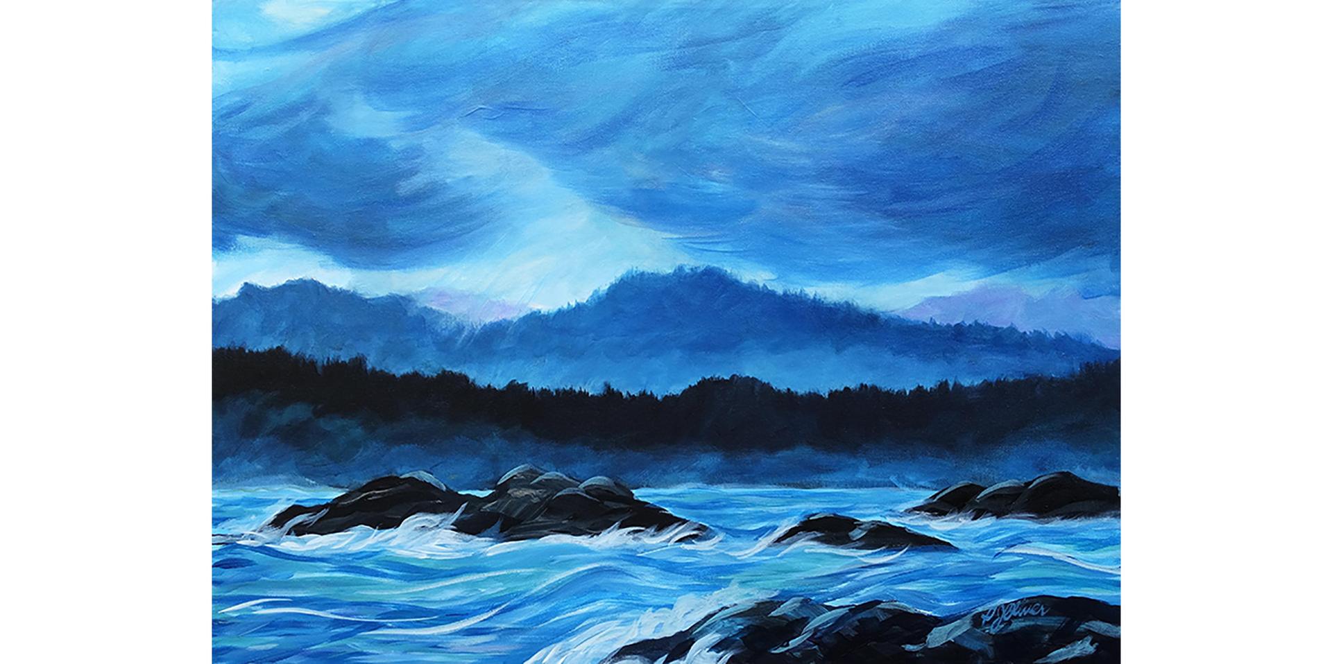 Jean’s work focuses on the movement, and vibrancy of the life force emanating from inside all nature, and in the textures worn like a skin over urban landscapes. The phenomena whereby a painter becomes one with her subject is one Jean refers to as murmurating. It’s a connection she often feels while working en-plein-air in locations favoured by her muse, Emily Carr.