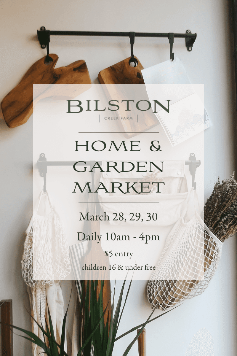 Let the Spring Home and Garden Market at Bilston Creek Farm inspire you for the season ahead. This unique market experience will see our beautiful barn full of vendors and local makers with a spotlight on ideas and wares just perfect for those touches around your home, garden and more to put you in a Springtime mood!