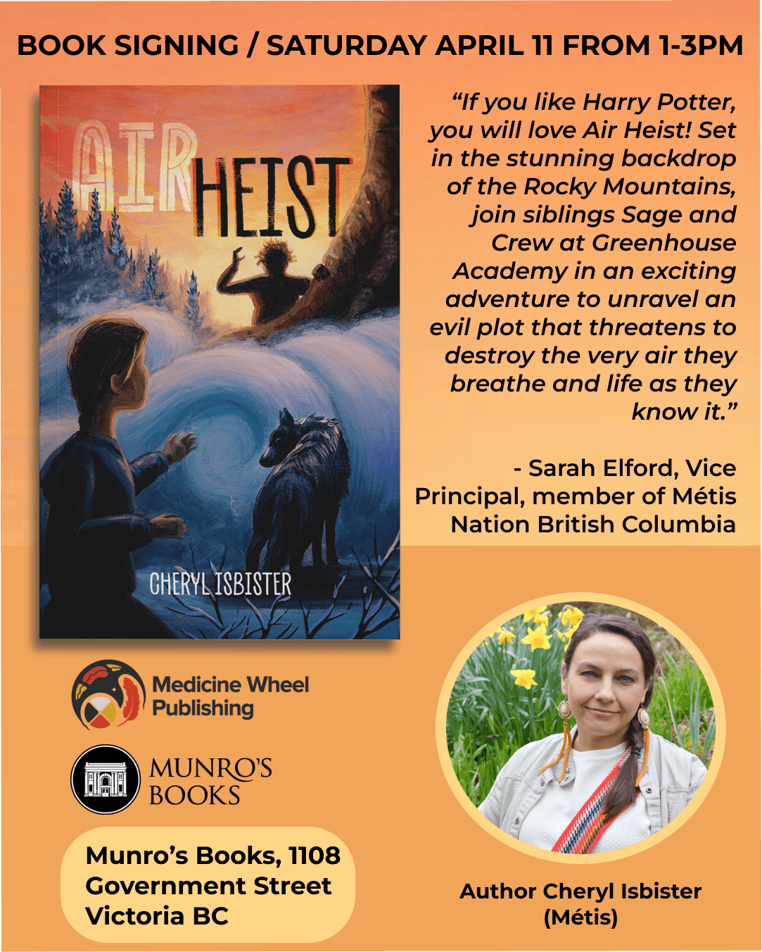 Come by Munro’s Books and meet local Metis author and educator, Cheryl Isbister!