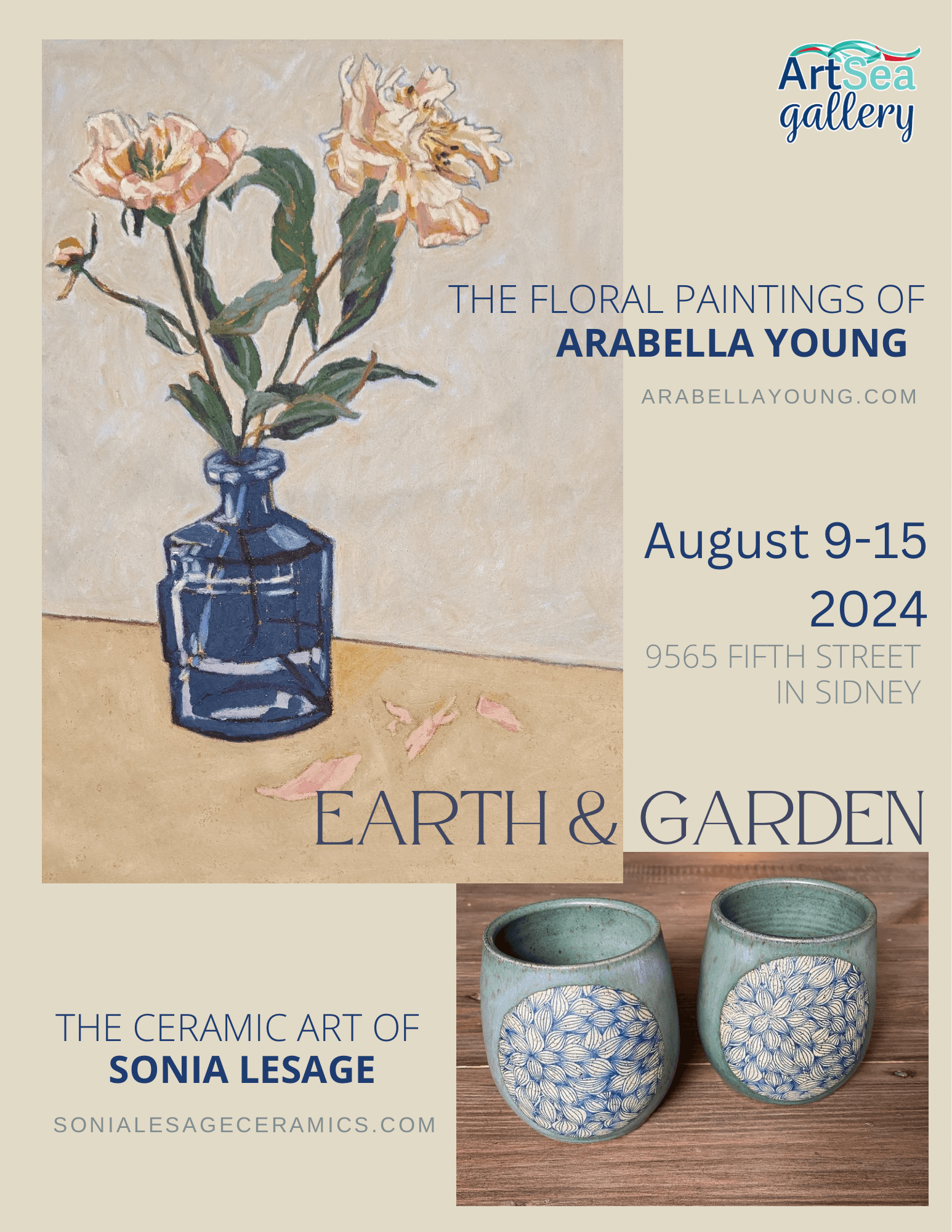 Sonia Lesage and Arabella Young are coming together to bring their community an art show and sale, sharing their most recent work. Earth & Garden features Sonia’s unique pottery and Arabella’s floral paintings
