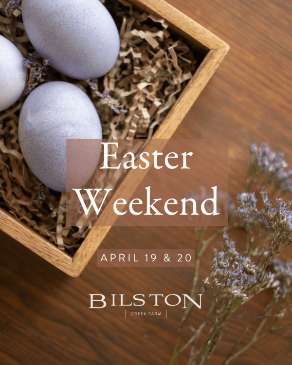 Join us for Easter Weekend at Bilston Creek Farm. Our family-friendly activities include a kids bunny hunt, a kids spring seed planting station, and our popular “Hunt for the Golden Egg” for the chance to win a fantastic prize!