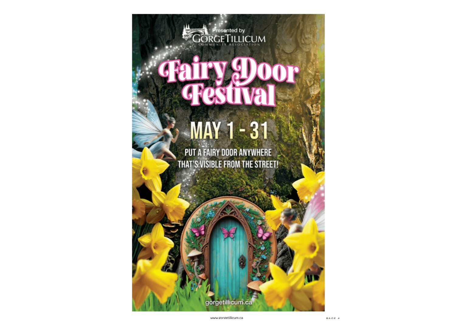 From May 1-30, we’re encouraging Gorge Tillicum residents to spread a bit of magic throughout our streets by putting a fairy door anywhere that’s visible from the street. Keep it subtle and rustic, or go for maximum sparkle – it’s up to you!