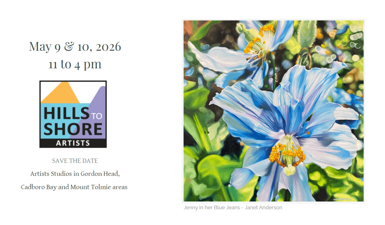 This self-guided artist tour and sale happens on Saturday May 9 and Sunday May 10 from 11:00 to 4:00 each day. A full description of the 19 artists and a map of the 10 locations can be found at hillstoshoreartists.ca
