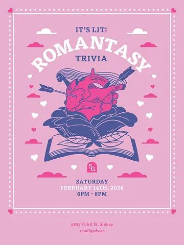 Calling all romantasy readers! Join us at Small Gods Brewing for a special Valentine’s Day edition of “It’s Lit.” Romantasy—romance novels set in fantastical worlds—is the fastest-growing literary genre of the decade. Our 2nd Annual Romanatasy Trivia will be organized by creature type this year, featuring one round each for dragons, fey/fae/faeries, vampires & werewolves, and other creatures of the dark. $10 per team registration (You will be emailed to confirm the size of your team) $6 beers all night & Prizes for the winning team + best costume Whether you’re Team Rhysand or Team Aidas, there’s a seat at our table for you.
