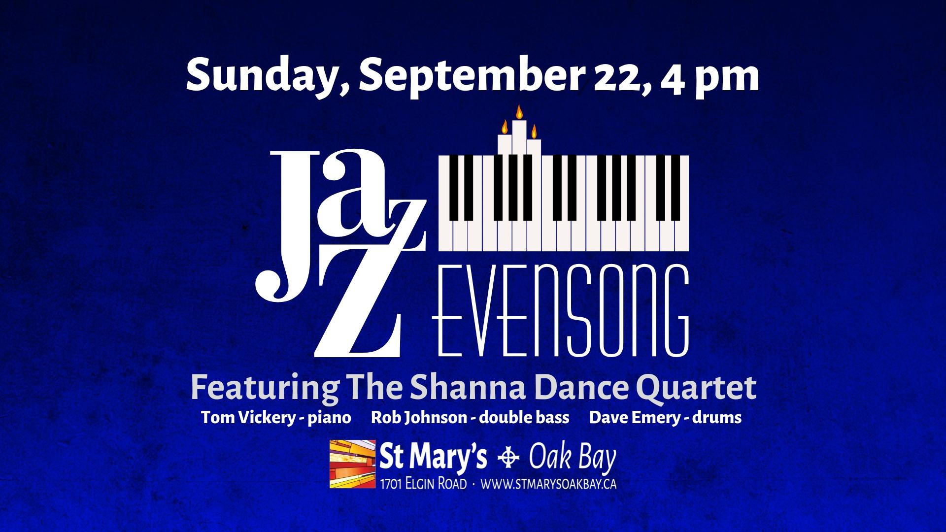 Please join us for the first Jazz Evensong of our 2nd season! Fabulous vocalist Shanna Dance will be joined by Victoria jazz icon Tom Vickery on piano, Rob Johnson on double bass and Dave Emery on drums who will play the wonderful music of Ella Fitzgerald at our service. Suggested donation – $20; donations can be made via cash or card. 4-5pm – Doors open at 3:30pm. Please spread the word!
