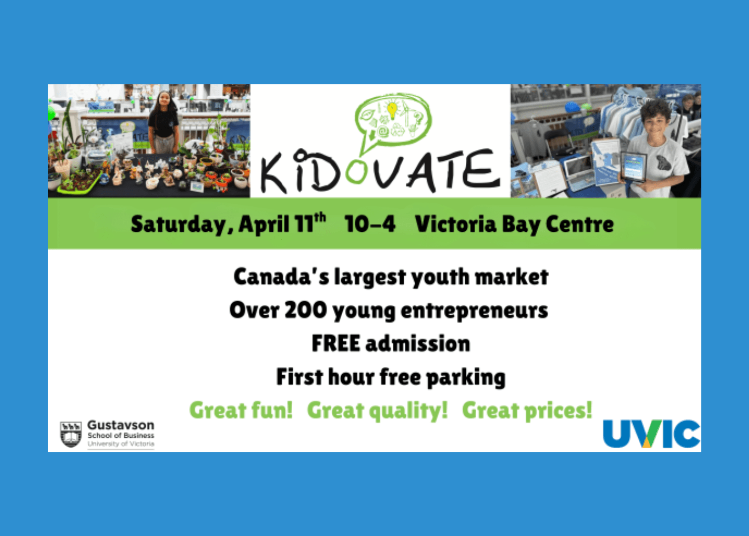 Kidovate Market Day is Canada’s largest youth entrepreneurship market with over 200 youth in grades 6-12 participating this year. A huge variety of high-quality items at great prices will be available for sale. Help encourage the next generation of entrepreneurs at this feel-good event of the Spring. Bring a friend and have a great time encouraging the next generation of entrepreneurs. Make sure you come early for the best selection and remember, every purchase helps support a young entrepreneur’s dream!