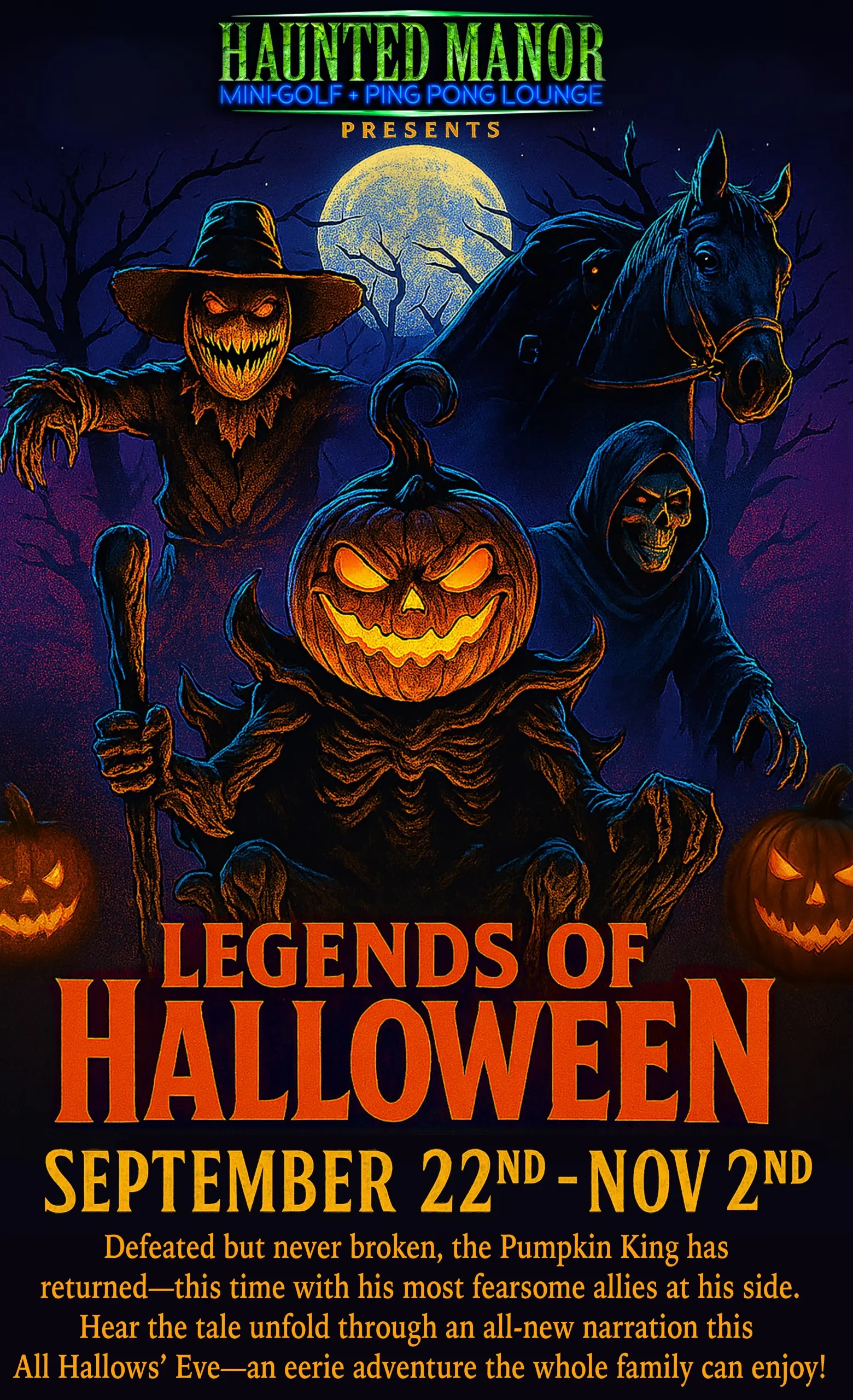 Step into the next chilling chapter as the Legends Of Halloween take over the Manor from September 22nd-November 2nd. Hear the tale unfold through an all new narration this All Hallow’s Eve – an eerie adventure the whole family can enjoy.