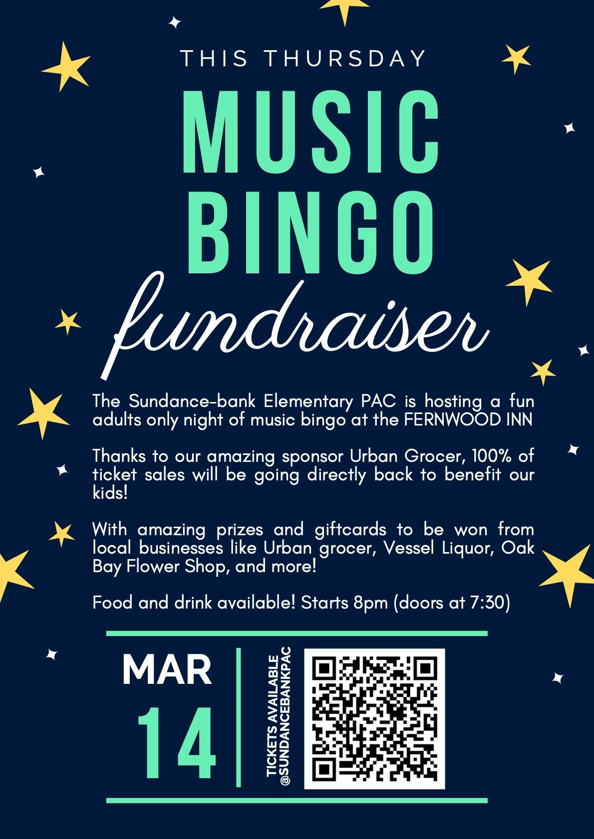 The Sundance-bank Elementary PAC is hosting a fun adults only night of music bingo at the FERNWOOD INN