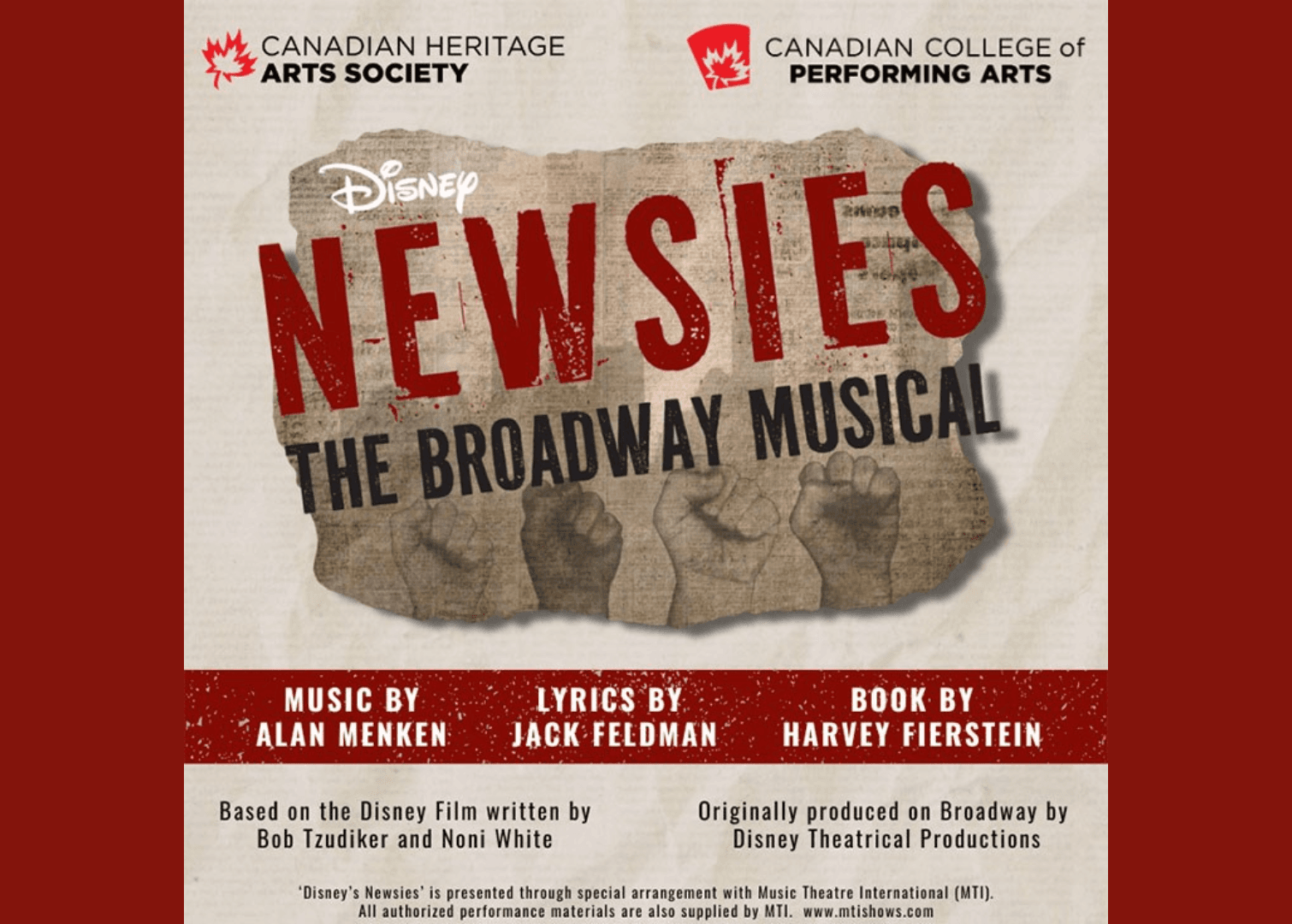 A Tony-award winning score to sweep you up in the dramatic fight for what’s fair – based on the strike of 1899 by the child labourers of New York, led by those selling the papers for the rich and powerful.