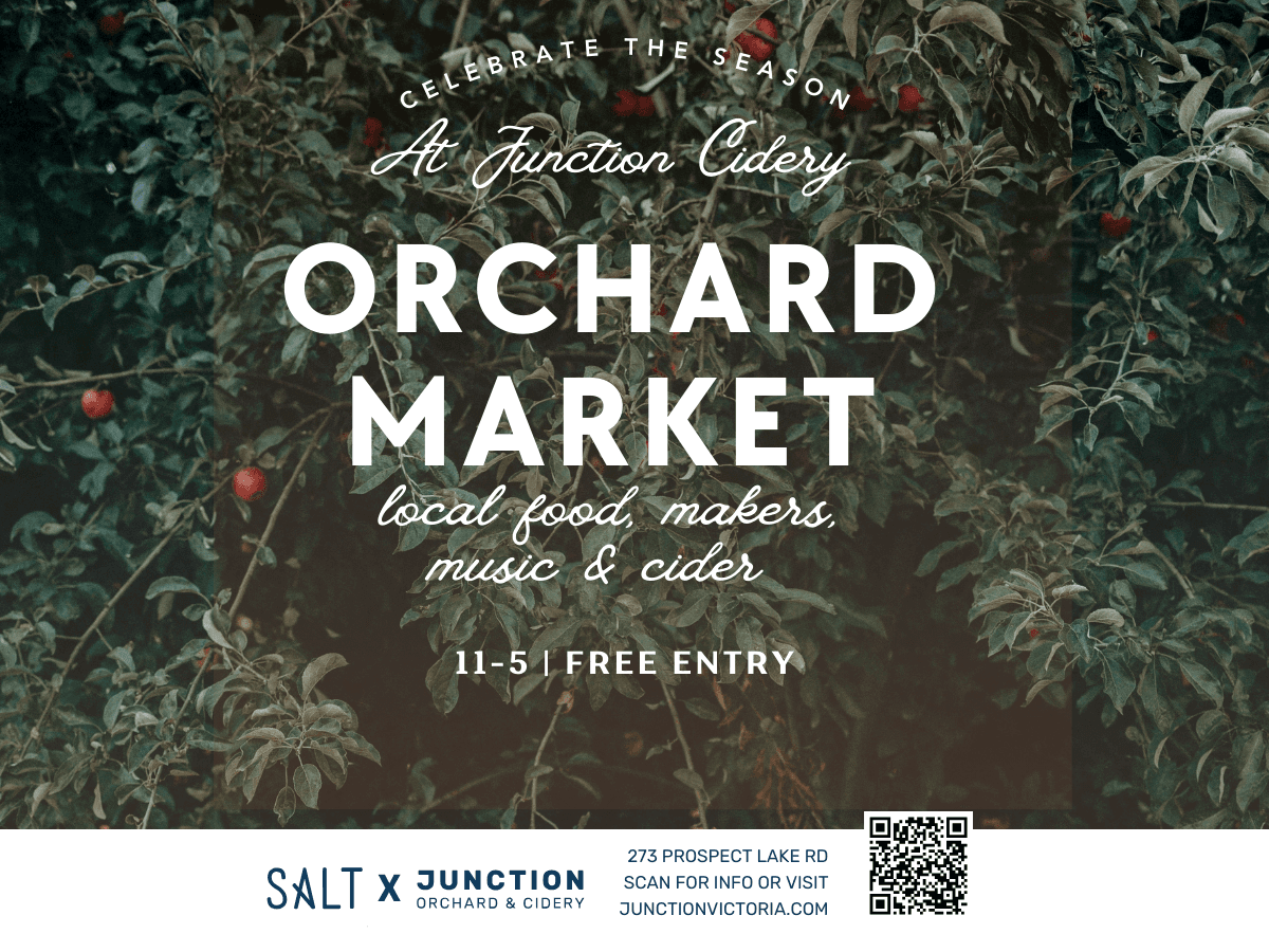 Browse market booths from favourite local vendors, farmers + makers while enjoying Junction cider, bites from Bicycle Pizza and local food vendors while listening to local musicians. Shop with Junction’s resident small businesses on Orchard Lane; Switchback Coffee, Ivalee Studio, SALT Clothing, and Hansell & Halkett.