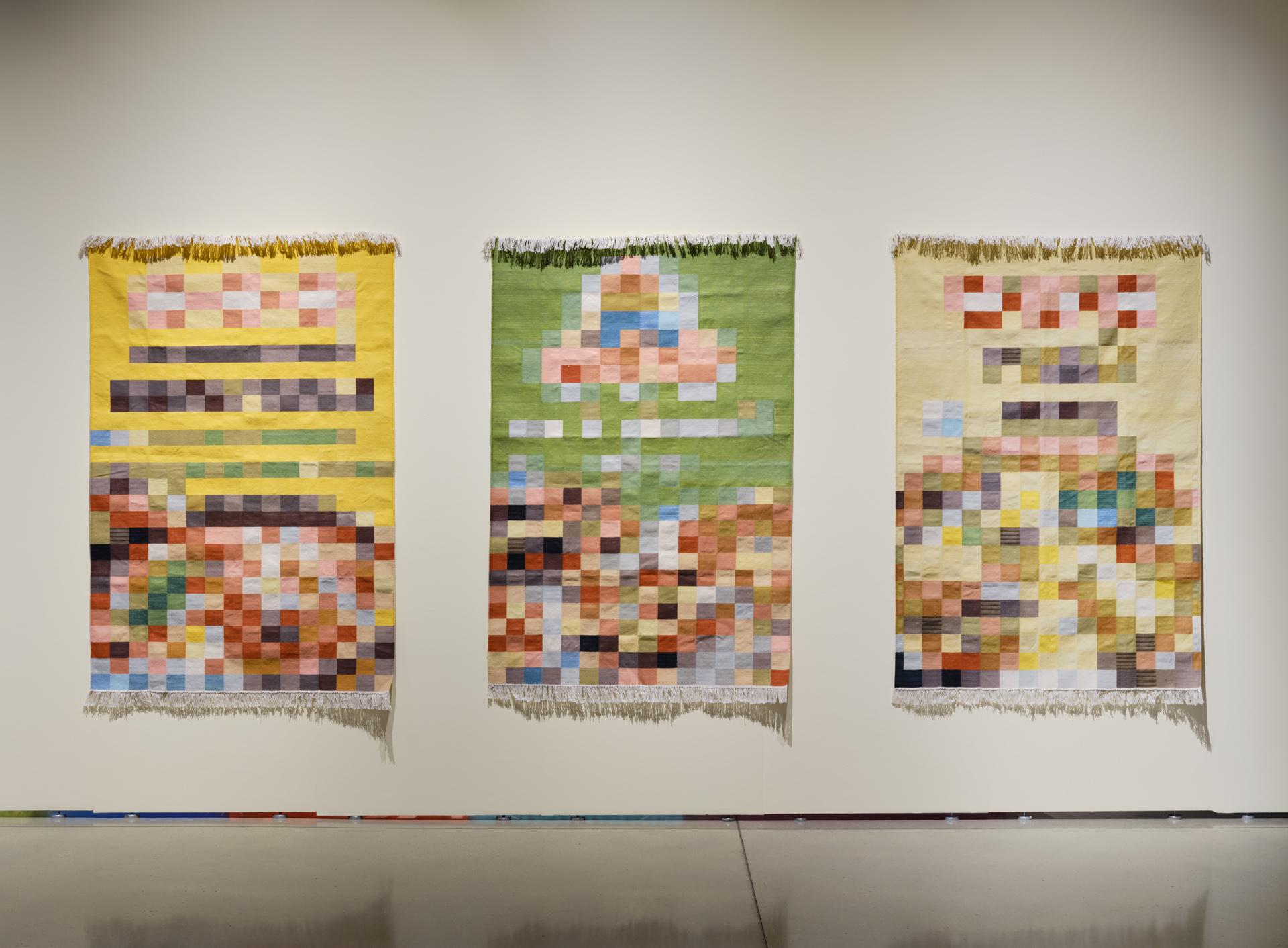 Image credit: Simranpreet Anand, हमारे स्वाद की असलियत, insatiable desires of a bourgeoisie, 2021, natural dyes and colon, 78 x 48” each. Rachel Topham Photography