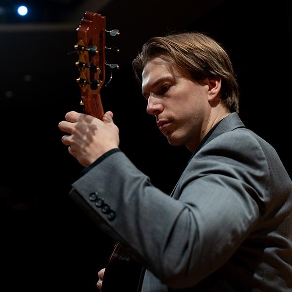 Simon Farintosh is an award-winning guitarist, composer, and educator based in Victoria, BC. Named one of CBC’s 30 Under 30 Classical Musicians in 2023, he is known for adventurous programming that blends classical guitar with contemporary influences such as ambient electronica. His recordings include Noctuary (2023), featuring original music for eight-string guitar, the EP Aphex Twin for Guitar (2021), which has garnered over 2 million Spotify streams, and Seascapes (2021), inspired by the landscapes of the Pacific Northwest. His compositions and arrangements are published by Les Productions d’Oz, Bergmann Edition, and Musicnotes. Simon holds degrees from the University of Victoria and the University of Wisconsin-Milwaukee, and is completing a Doctor of Musical Arts at the University of Toronto. He is the guitar instructor at UVic and director of ReVamp Guitar Academy, and currently serves as President of the Victoria Guitar Society. He performs on guitars by Martin Blackwell and Jeff Sigurdson.