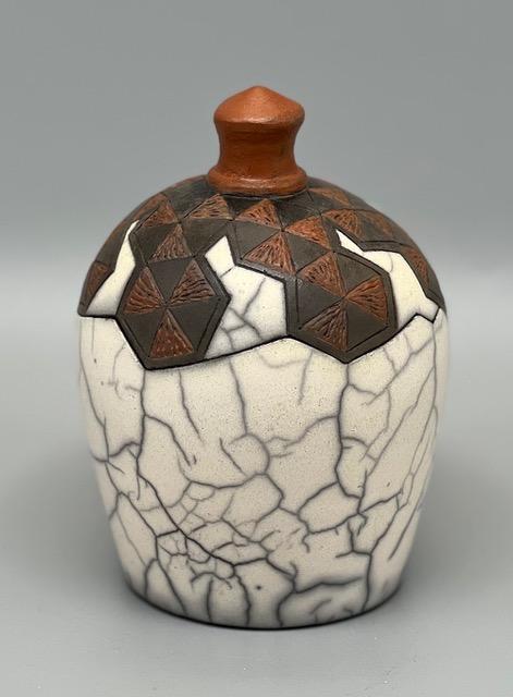 Image: Naked Raku Lidded Jar by Jan Lovewell – Naked Raku, 5½ x 3⅝ inches
