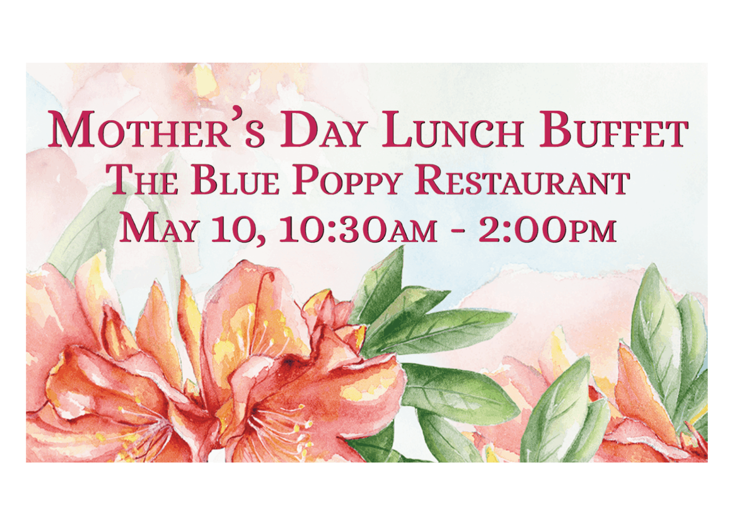 Come together to celebrate the Mothers in your life. Enjoy the beautiful blooms in The Gardens, followed by a lunch buffet in the Blue Poppy Restaurant featuring a selection of assorted charcuterie & cheese, fresh seafood, small bites & delicious hot items made with locally sourced produce, and beautiful house-made desserts. Reservations are required for the Mother’s Day Buffet.