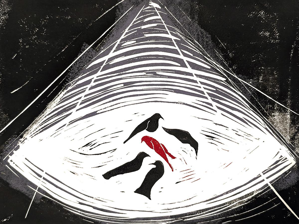 A cat that knows too much and a mysterious murder of crows. Through oil paintings, linocut prints, and sculptures this exhibition conjures a local noir fiction. Familiar places elicit intrigue and every image suggests a story unfolding at the edges.