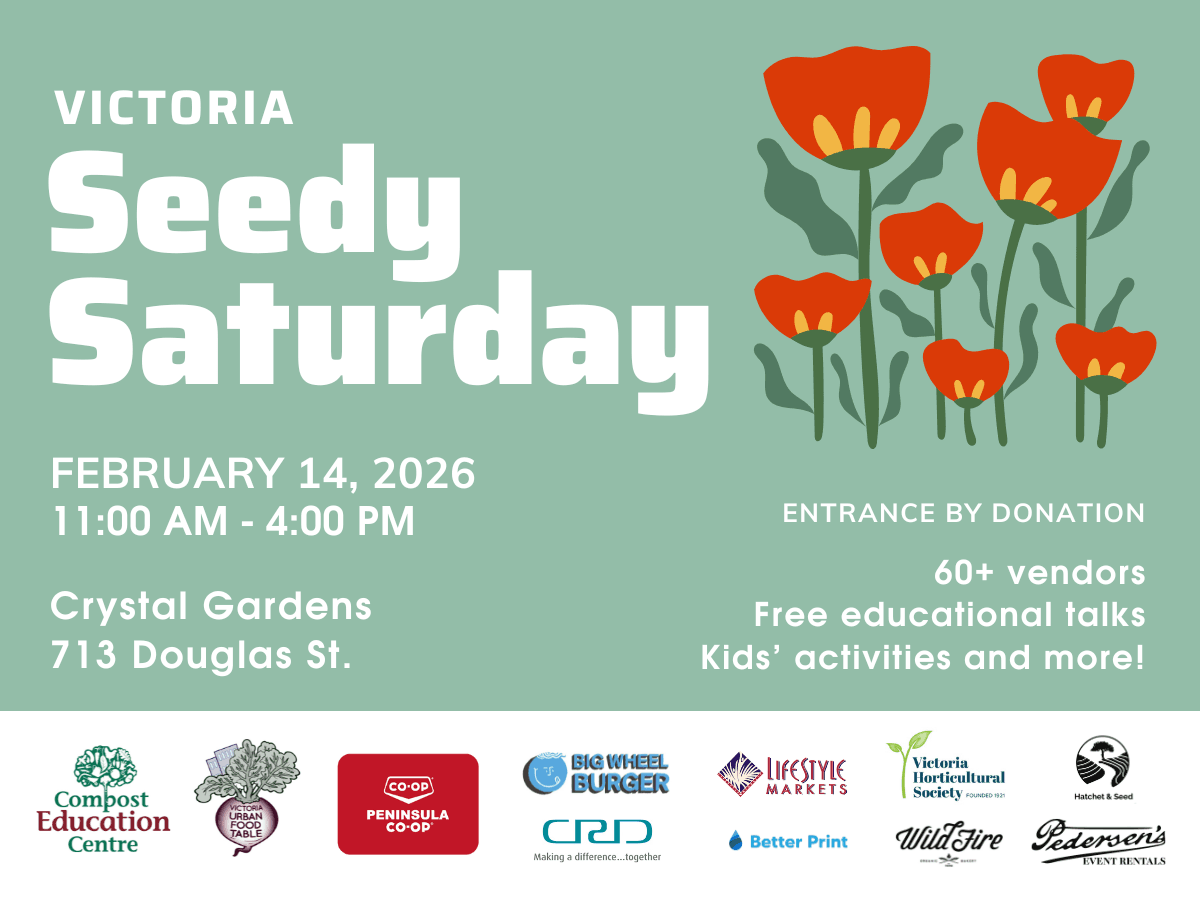 Victoria’s premier gardening event is back on February 14th, 2026! This all-ages event features over 60+ vendors, free speaker sessions, kids activities, and more! Stock up on seeds, plants, gardening supplies of all kinds, and learn from local experts! 🌱 Entrance is by donation.
