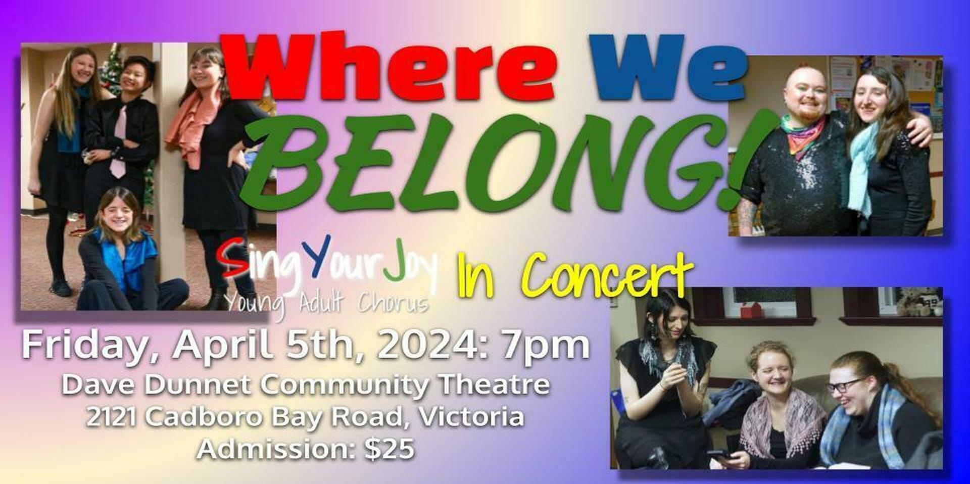 We are excited to return to the Dave Dunnet Theatre for our Spring Concert: Where We Belong – a celebration of community and relationship in song. SingYourJoy is in its 13th year of bringing great musical experiences to our audiences, and connection and belonging for our singers.