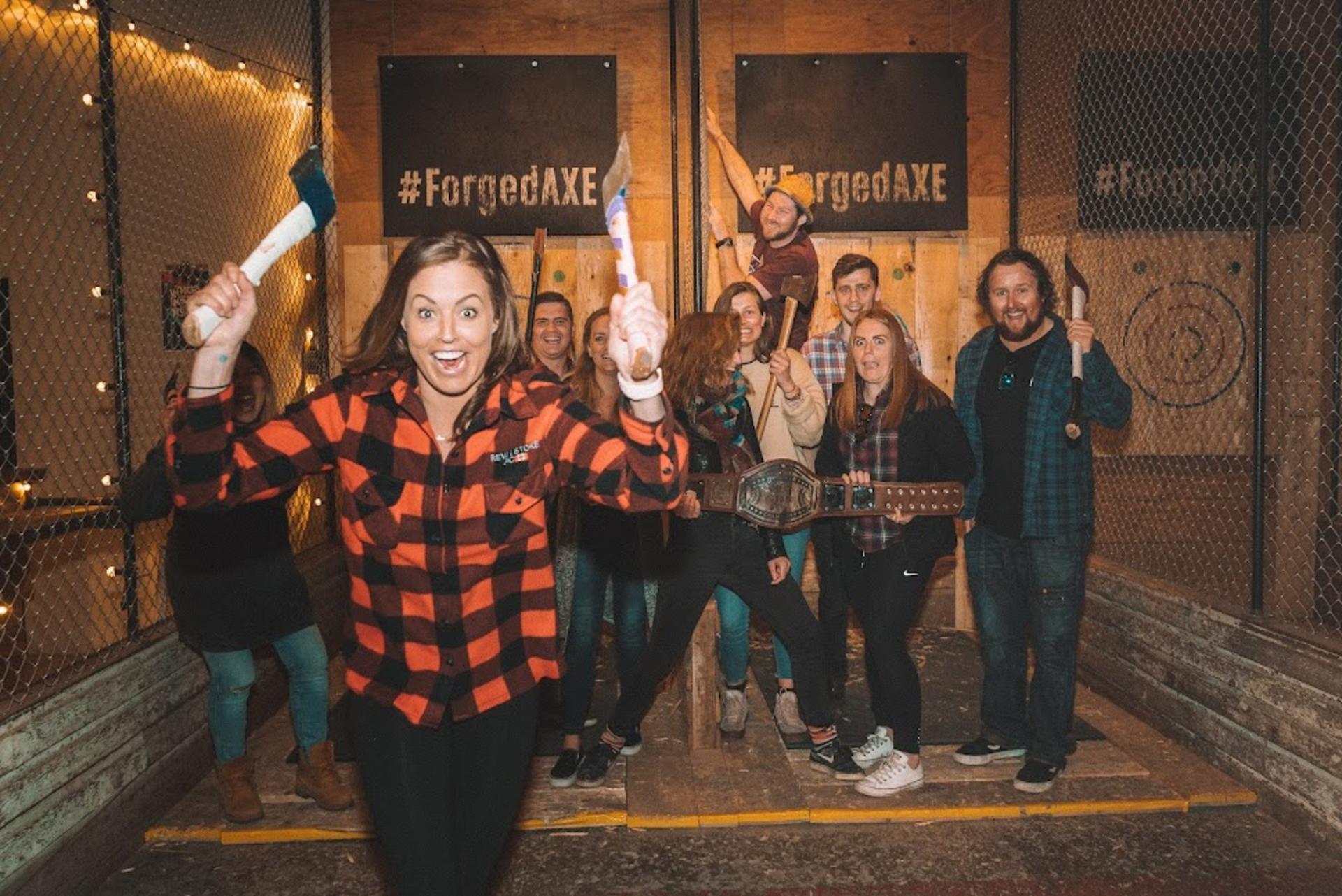 Unleash your inner lumberjack with Forged Axe Throwing! Our action packed one hour sessions will take you from zero experience to axe throwing champ in one hour… guaranteed! Transport yourself into a wood lined axe throwing arena and get ready to compete for the championship belt.