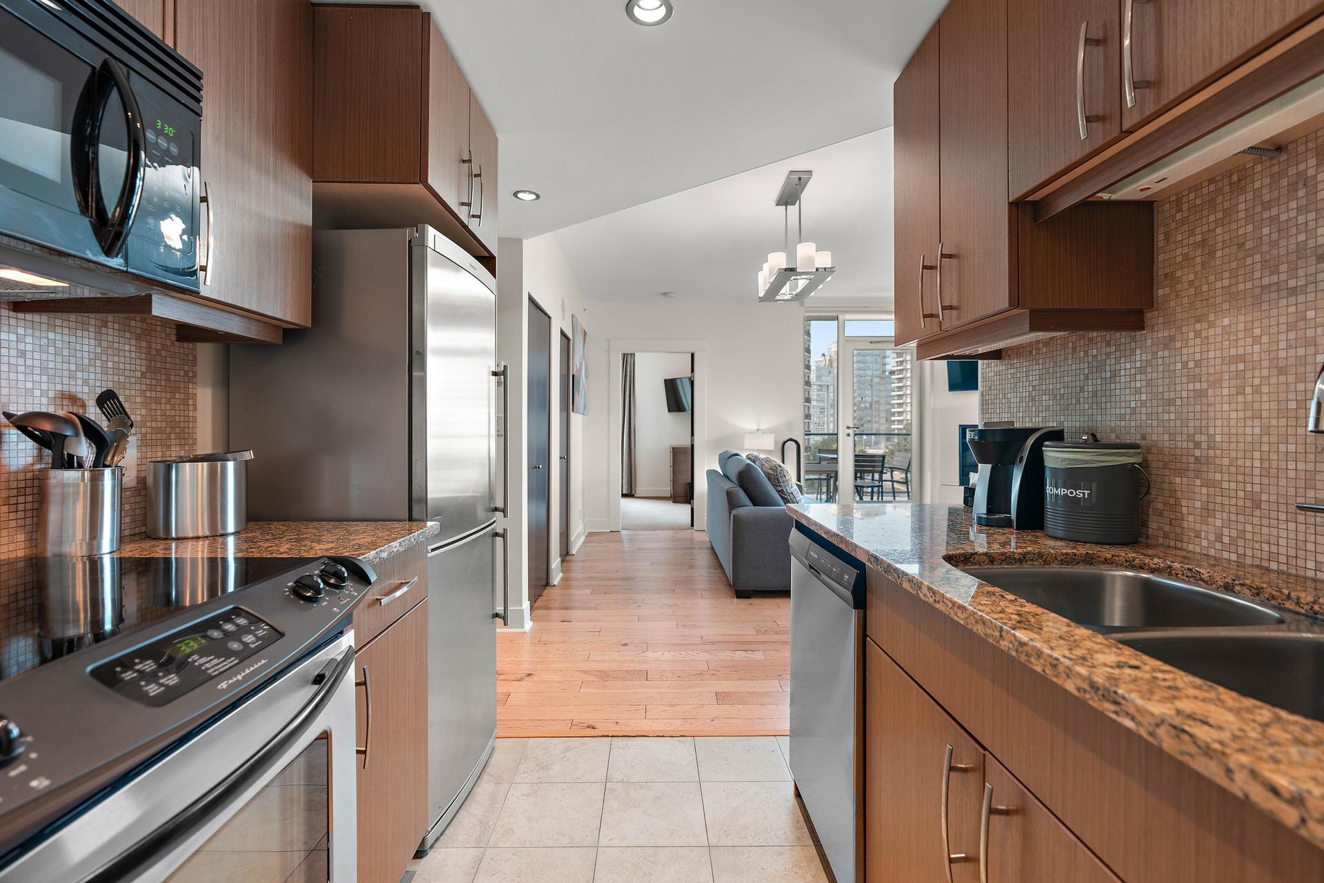 Our suites feature fully equipped kitchens and kitchenettes, including a washer and dryer, private balconies, gas fireplaces, and plenty of space to unwind. Guests can look forward to premium furnishings, high-quality linens, and impeccable, modern décor. We are proudly pet-friendly, offering special suites dedicated to making your four-legged friends comfortable.