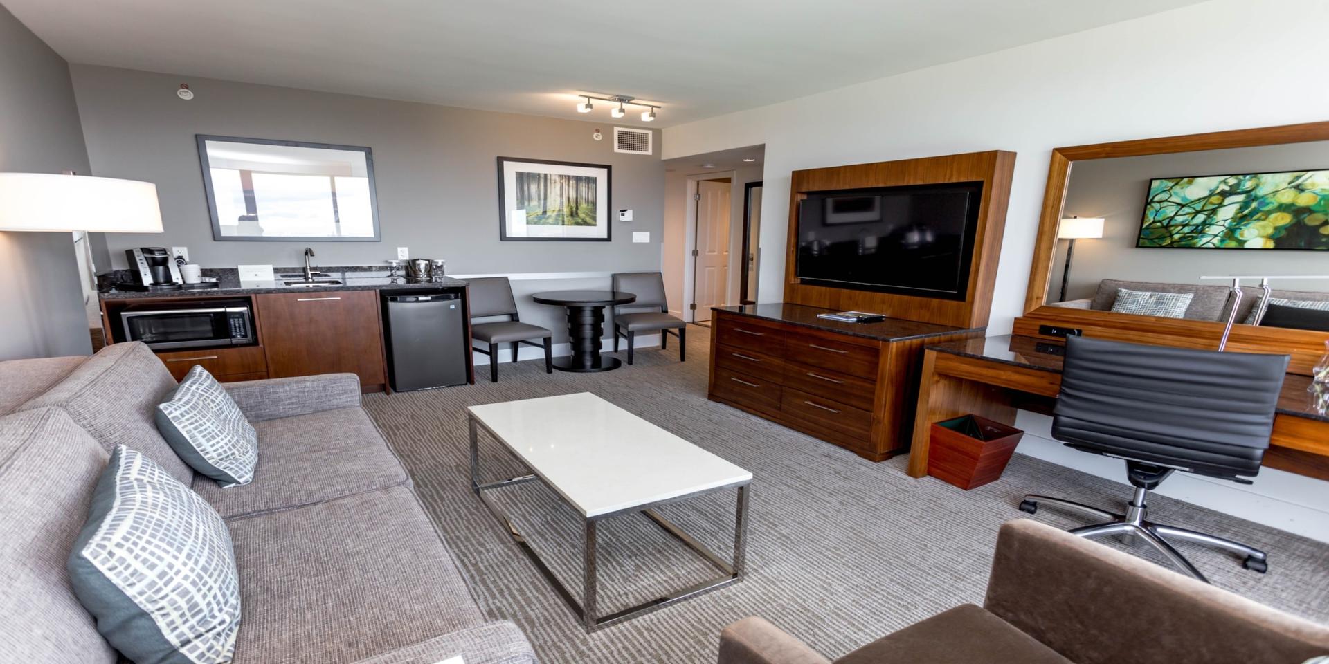 Enjoy the comfort of our air conditioned rooms or breathe in the fresh ocean air from one of the many rooms that feature a balcony. All of the guestrooms include a fridge and microwave, ultra-high speed internet access, Keurig® coffee makers, 42 inch flat screen tv’s and large ergonomic work spaces. Our spacious suites offer convenience kitchens, separate living areas and balconies which is ideal for enjoying the breath-taking views.