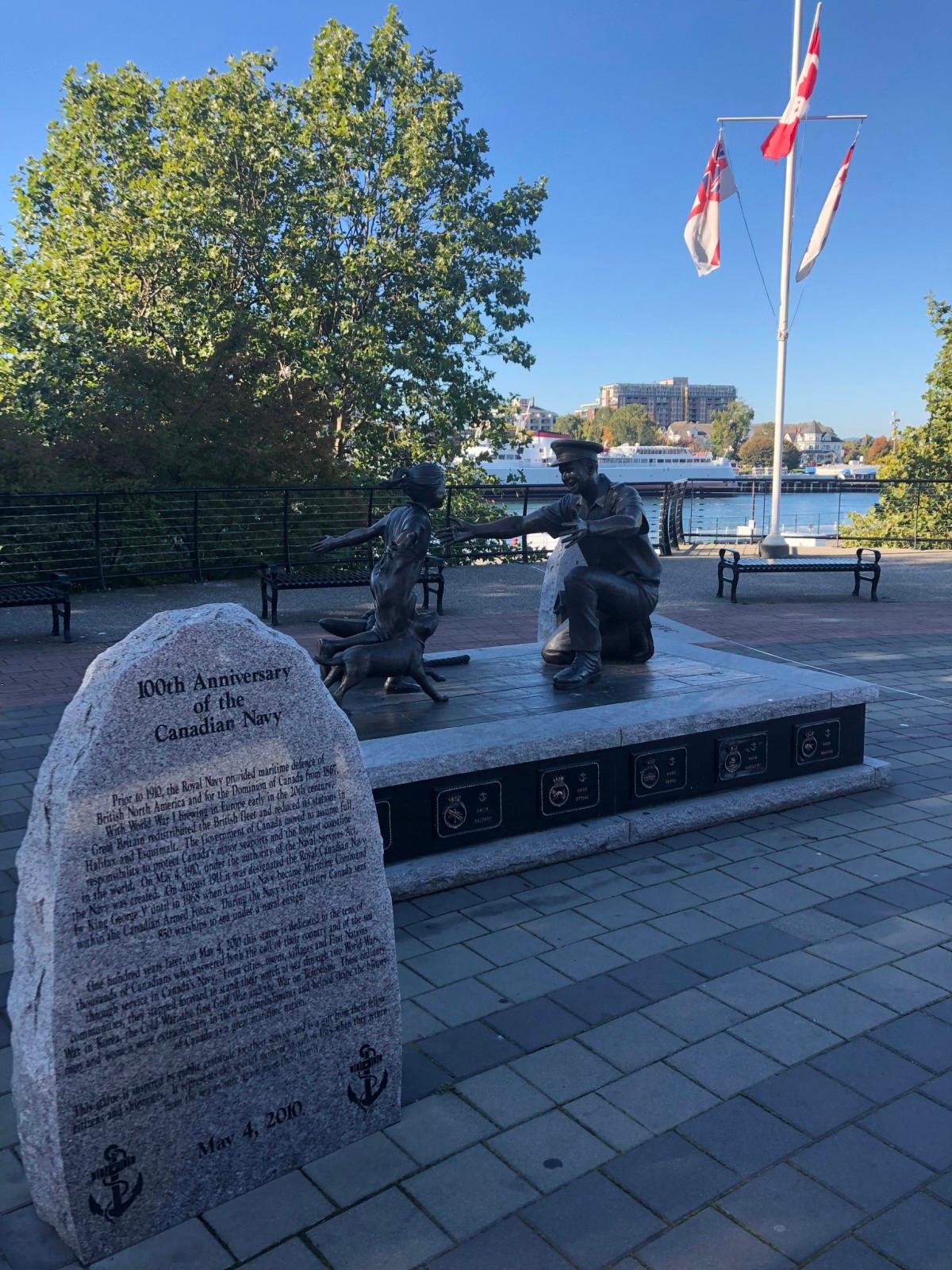 “The Homecoming” by sculptor Nathan Scott captures that magical and special moment when a sailor returns home to family and community. Each memorial brick celebrates our gratitude for the tens of thousands of Canadians who answered both the call of their country and of the sea through the first century of Canada’s Naval Service. For more information, please email Tourism Victoria’s Visitor Centre at [email protected], or phone 250-953-2033 or toll-free 800-663-3883.