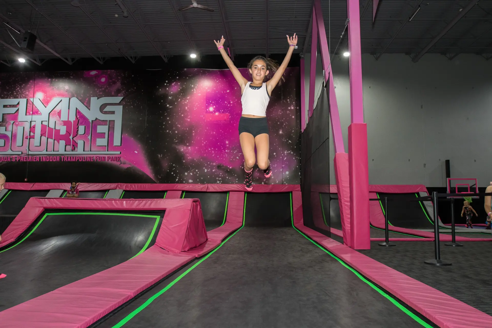 Flying Squirrel is Canada’s largest and most exciting spring-loaded urban playground with a wide range of attractions. We have the ultimate party experience, the kids will literally be jumping for joy to have a Super Fly party. When it comes to group or corporate events no activity will beat our Flying Squirrel. Whether you’re team building or just playing, your fun levels will reach new heights. We offer low-impact anti-gravity cardio workouts that are easy on your joints and boost cardio better than 33 minutes of running! It’s great exercise for adults and an ideal way for kids to play hard and stay safe, making us your destination for birthday parties, corporate events, and aerobic fitness courses. It doesn’t matter if you’re under 5 or an action sports junkie in training – you’re never too old or too young to have an awesome time.