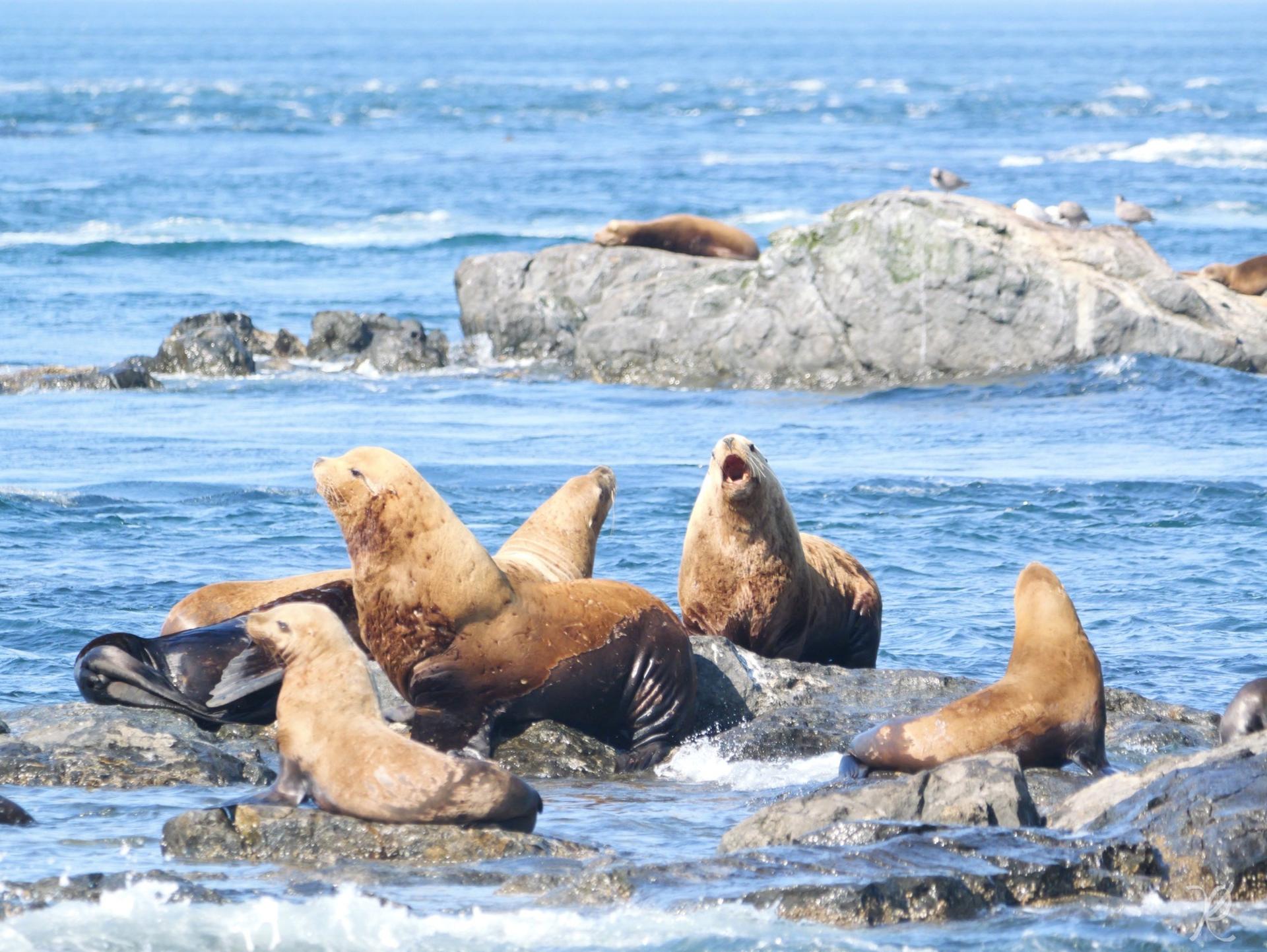 All tours are currently running on our luxury 60-foot Ocean Cruiser. Marauder IV is fast, quiet, stable and comfortable. Sit inside, outside, or on the top deck with the Captain – the viewing options are all terrific! Especially unique are side decks running the whole length of the boat – lots of room to move, view and take that perfect picture. A spacious bathroom and limited capacity to allow for social distancing make this 84-passenger boat suitable for all ages and abilities.