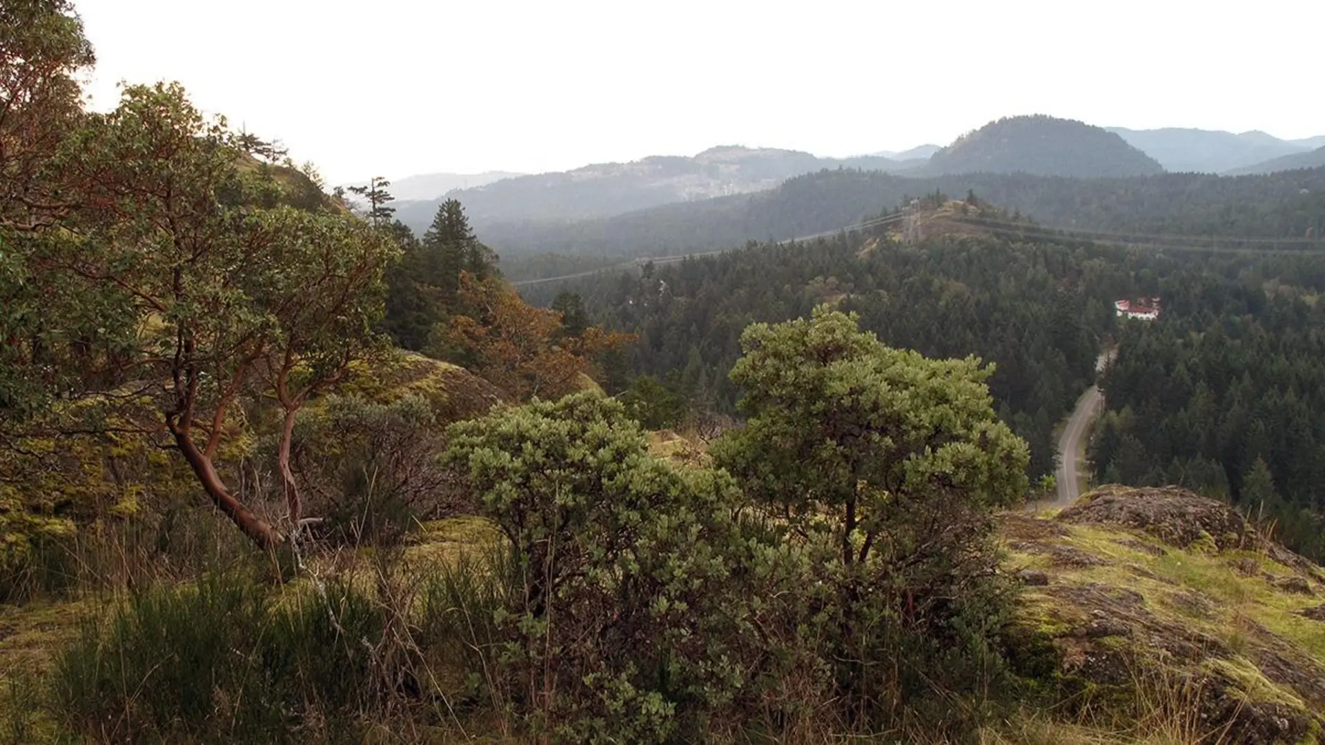From the summit (364 m) of this small park, enjoy views of the Malahat, the Highlands, Victoria and the distant Olympic Mountains.