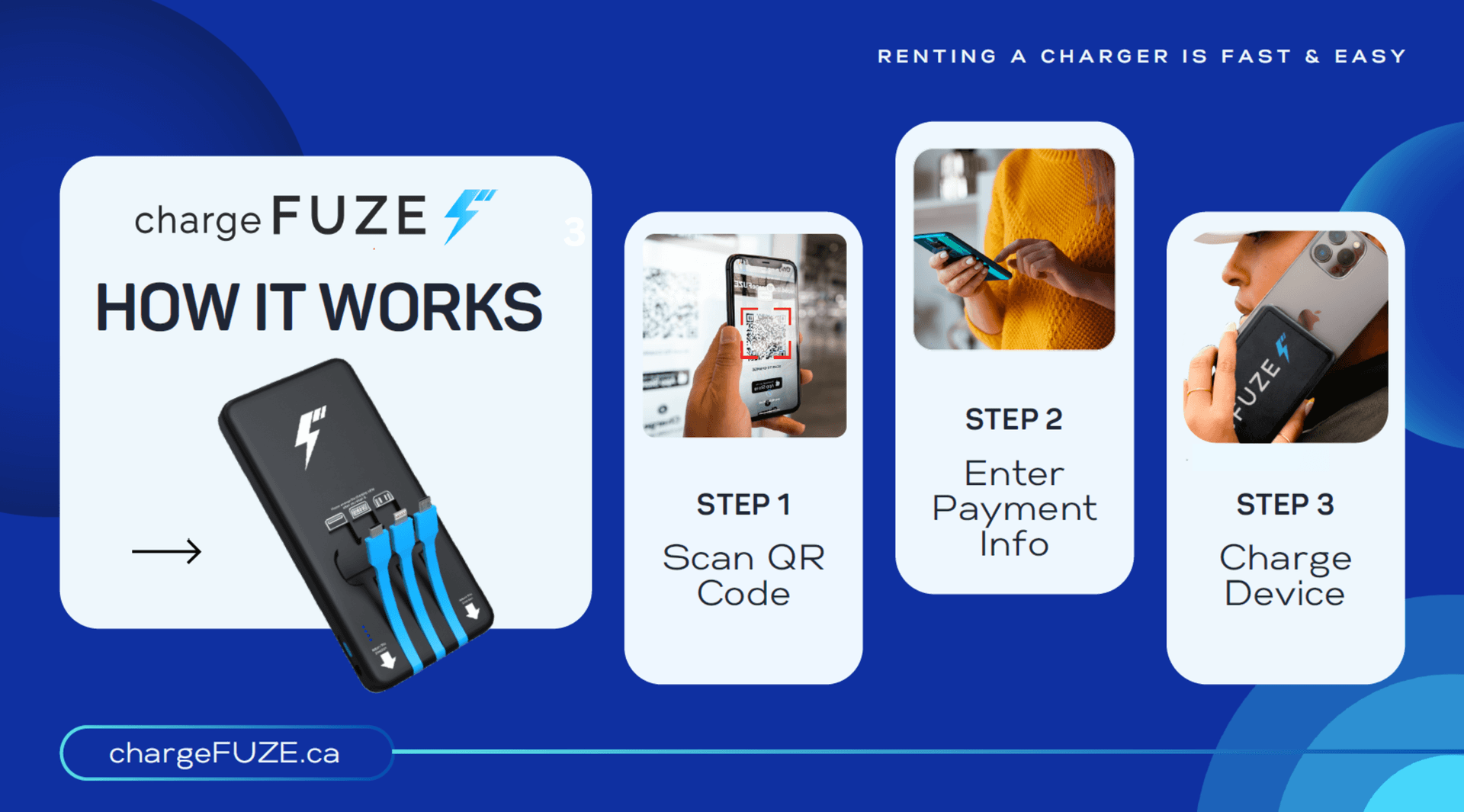 Stay connected while exploring Victoria with convenient portable phone charger rentals powered by ChargeFuze Canada. Our self-serve kiosks dispense fully charged power banks you can take with you on the go—perfect for sightseeing, capturing waterfront views, and staying in touch throughout the day. Simply rent, charge your device, and return. Download the ChargeFuze app to find a participating location.