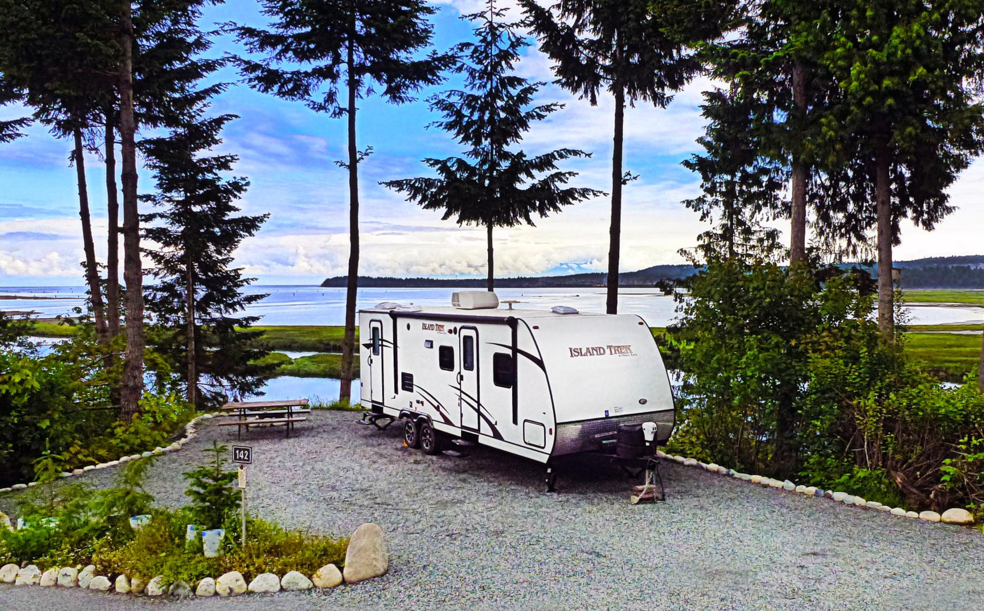 53 acre, 300 premium site waterfront campground. 75 minute drive from Victoria, located on the edge of Nanaimo Harbour and the Nanaimo River. Open year round, campers at this top rated park often say it’s like a provincial park but with full services! Wifi, clubhouse, trails and onsite recreation located in the gateway to Vancouver Island exploration. Online booking with site pictures and availability calendar.