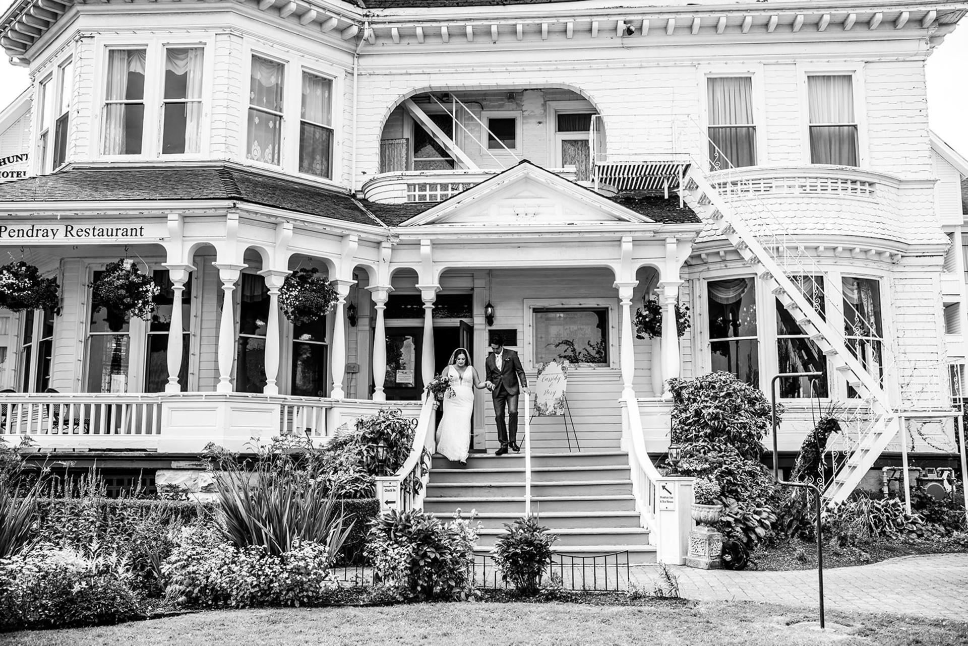 The Pendray Inn features ten unique guestrooms, including the romantic Pendray Room overlooking the harbour, making it the perfect wedding suite for the bride and groom. Guests can start their day with a complimentary gourmet breakfast and enjoy additional amenities such as concierge service, gated underground parking, and EV charging stations. Adjacent to the Pendray is the Huntingdon Hotel and Suites, where additional guestrooms can be booked for your out-of-town guests.